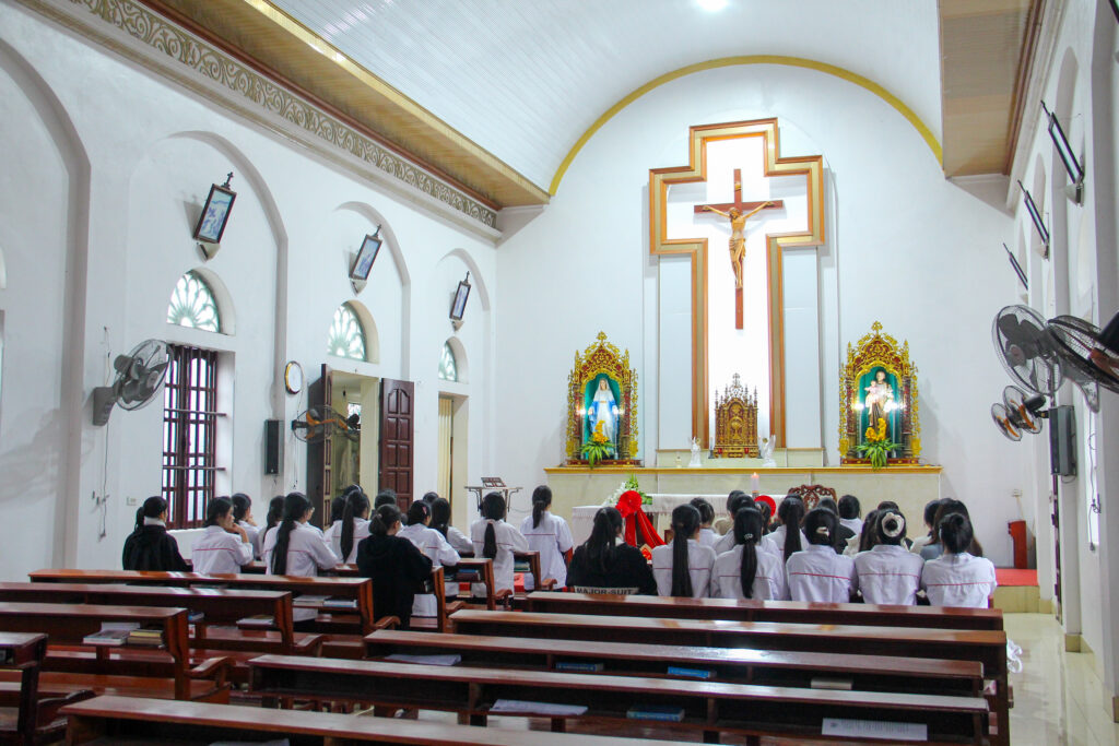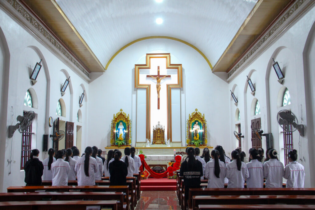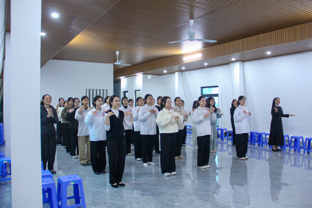 Sau những giây phút sinh hoạt sôi nổi, các em cùng quý dì lặng trầm quy tụ bên Thánh Giá Chúa để dâng lời tạ ơn một năm đã qua. Trong niềm phó thác, mỗi người cùng thiết tha xin ánh sáng từ Thánh Giá Chúa như ngọn hải đăng hằng soi chiếu, dẫn đưa các em vượt qua những khó khăn trong cuộc đời, để các em vững vàng định hướng và chọn lựa con đường dấn thân mà Người hằng mong đợi.