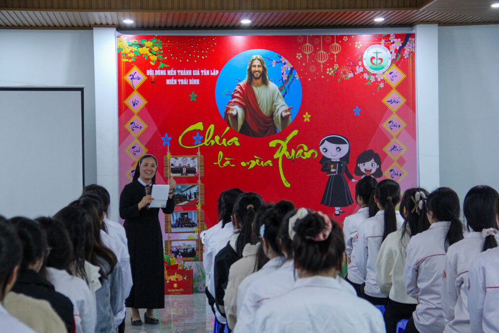 Ngày đăng: Tháng 2 12, 2026Trong không khí rộn ràng của những ngày cuối năm Ất Tỵ, sáng Chúa Nhật ngày 08/02/2026, Ban Mục vụ Ơn gọi miền Bắc – Hội dòng Mến Thánh Giá Tân Lập, đã tổ chức buổi gặp gỡ Tất niên đượm tình thân cho các em tìm hiểu ơn gọi tại Cộng đoàn Bác Trạch.