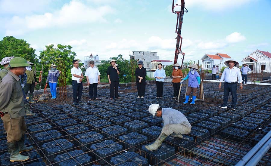 Sau thời gian khởi công, sáng ngày 15/08/2022 Cộng đoàn Bác Trạch – Miền Thái Bình thuộc Hội Dòng Mến Thánh Giá Tân Lập đã tiến hành đổ mái tầng 1 khu nhà ở, sinh hoạt cho chị em.