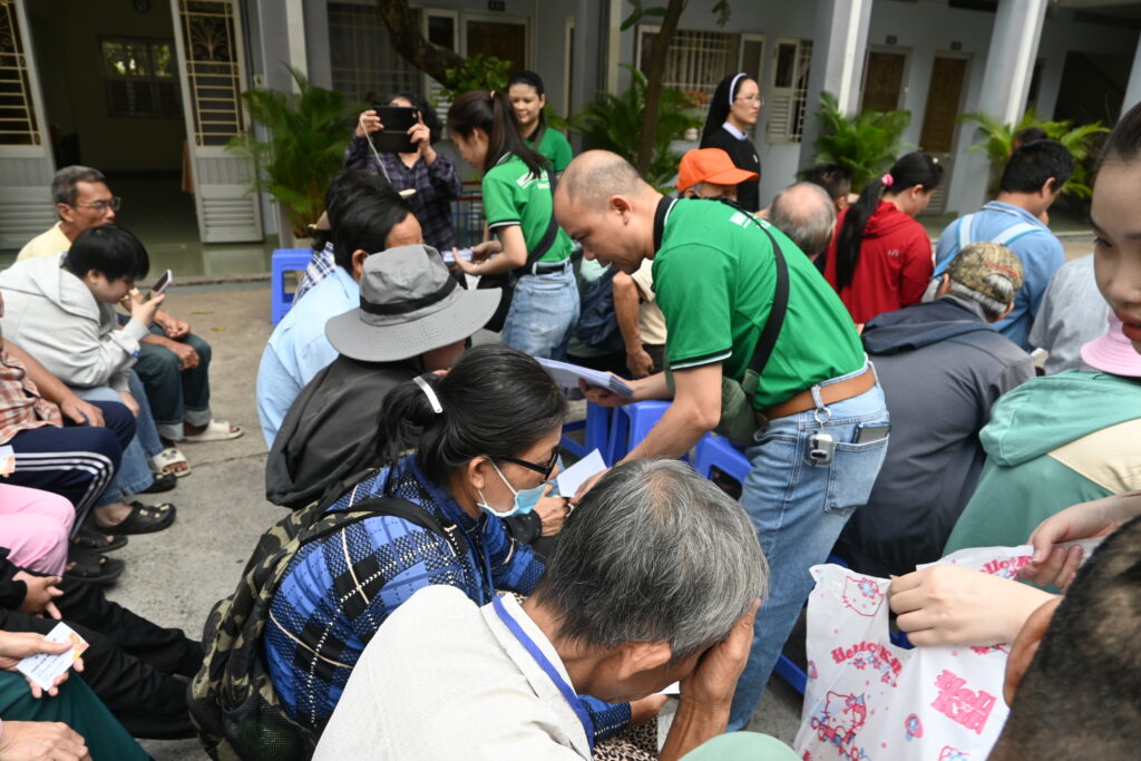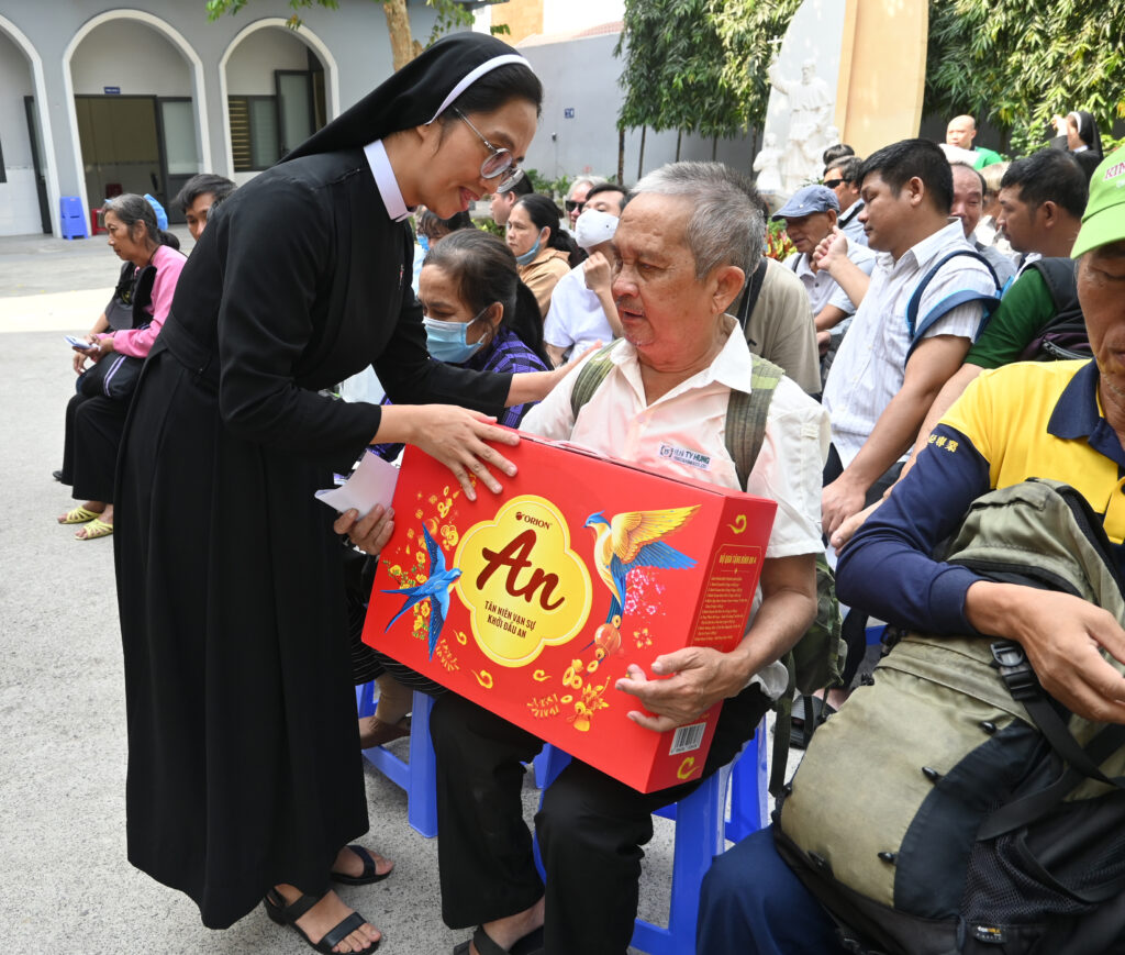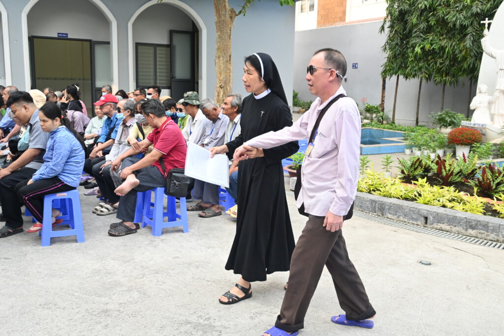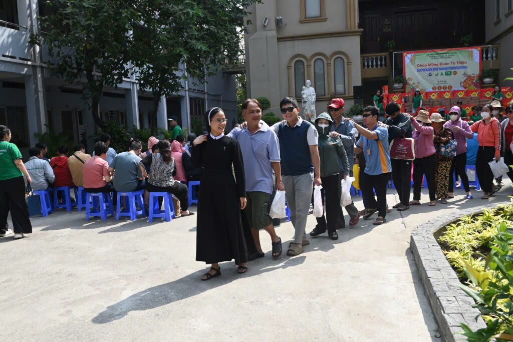 Ngay từ sáng sớm, khuôn viên Hội Dòng đã rộn ràng đón tiếp các anh chị em khiếm thị đến từ nhiều phường xã trong thành phố Hồ Chí Minh, cùng một số khu vực lân cận như Long An, Tây Ninh… Chiếc gậy vốn là người bạn đồng hành dẫn lối cho các anh chị khiếm thị trong cuộc sống thường ngày, nhưng hôm nay những đôi tay thay vì cầm gậy lại nhẹ nhàng đặt lên vai quý Sơ và các thành viên của Tập đoàn GLOBELINK VIETNAM. Hình ảnh này như một lời nhắn gửi thầm lặng mà sâu xa: “Các anh chị không bước đi một mình, vì luôn có những người sẵn sàng đồng hành và chia sẻ”.