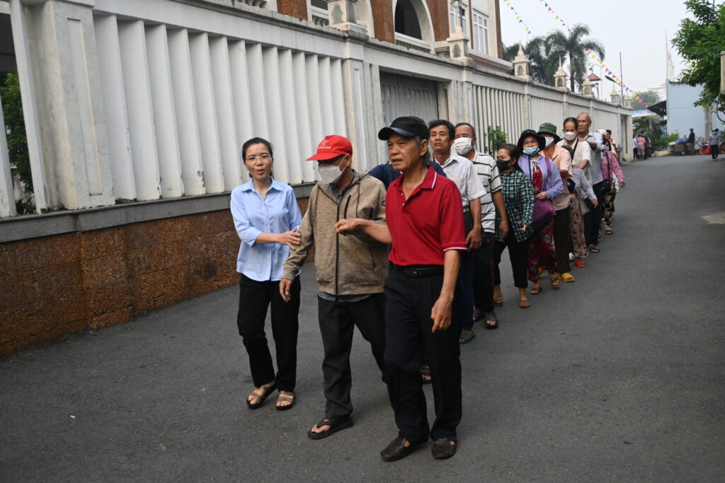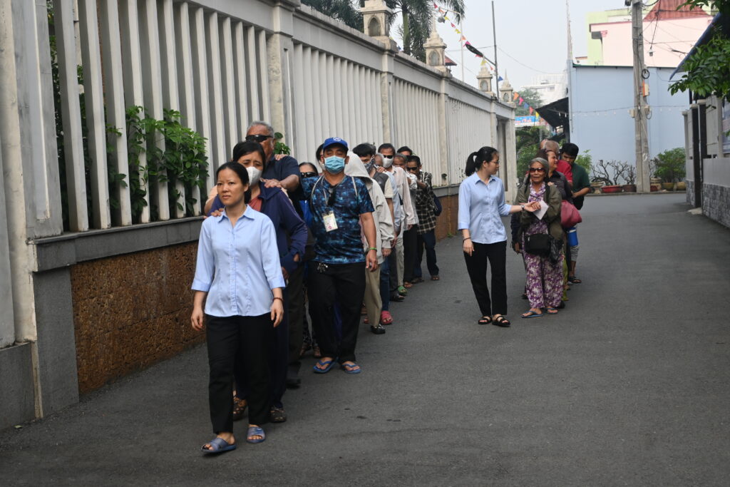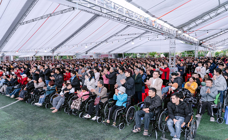 Giữa không gian ấy, hình ảnh những bàn tay khiếm thị nhẹ nhàng nắm lấy nhau, dìu nhau từng bước, để lại nhiều xúc động. Họ không nhìn thấy con đường phía trước, nhưng vẫn vững tin vì biết mình không bước đi một mình. Sự gắn kết âm thầm ấy trở thành một lời chứng sống động về niềm tin, về hy vọng và về sức mạnh của tình người.