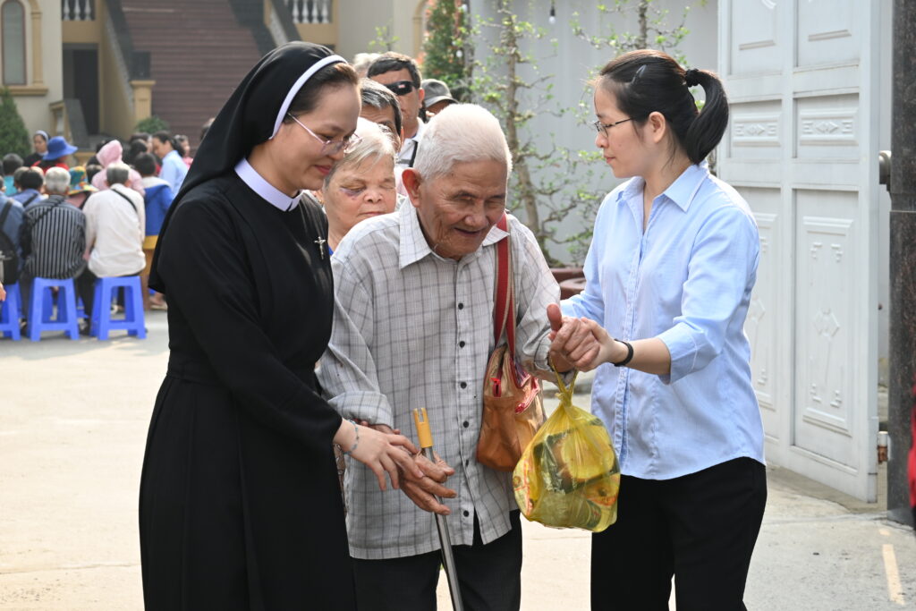Ngay từ sáng sớm, chị em trong Hội Dòng đã quây quần bên nhau, vui tươi và ân cần chuẩn bị những phần quà nhỏ bé nhưng chất chứa trọn vẹn tâm tình yêu thương để trao gửi đến những anh chị em khiếm thị. Những phần quà được trao đi cũng là lời tri ân của Hội Dòng gửi đến anh chị em khiếm thị – vì chính sự hiện diện của họ đã giúp chị em được sống và thực thi sứ mạng yêu thương “chuyển cầu trong cuộc sống” với những ai đang cần chị em giúp đỡ.