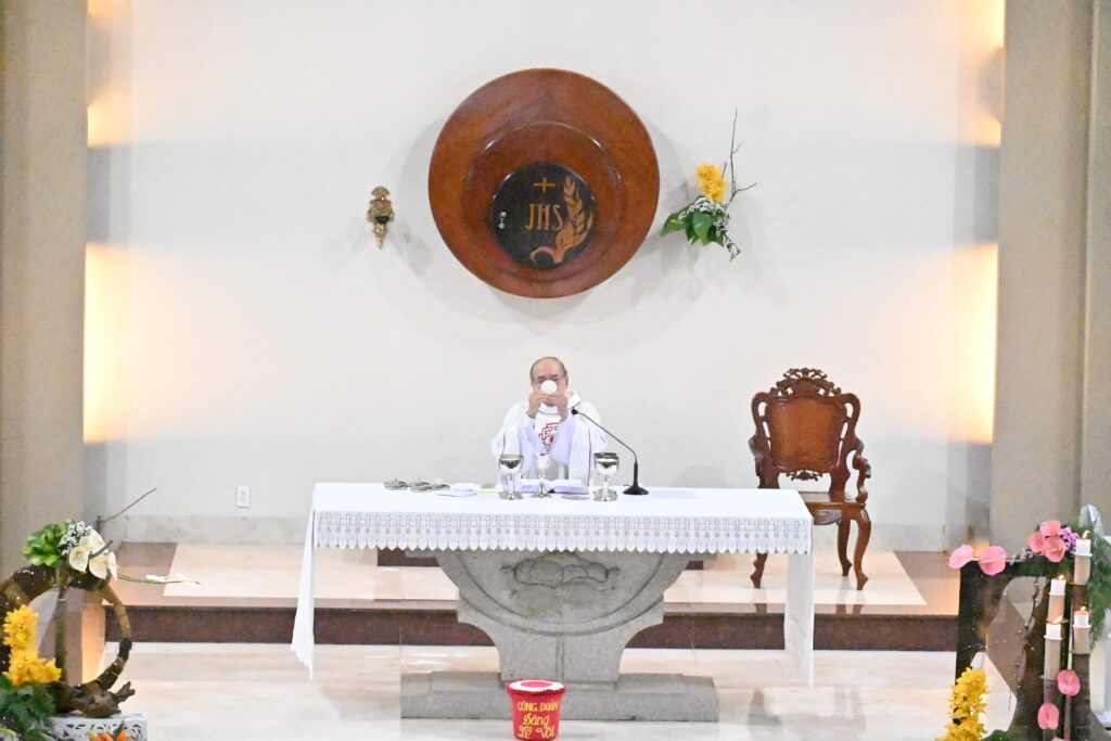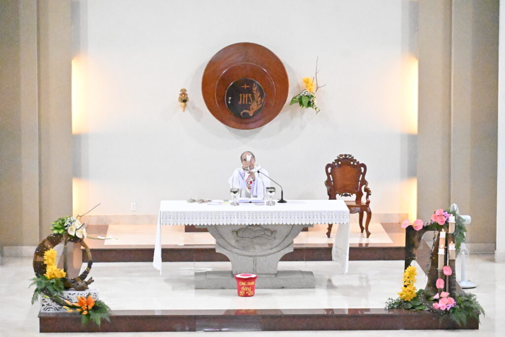 Thánh Lễ được cử hành vào lúc 17g30, ngày 07/02/2026, tại Nhà nguyện Hội Dòng, trong bầu khí trang nghiêm và sốt sắng của toàn thể cộng đoàn. Chủ tế Thánh Lễ là Cha Phêrô Nguyễn Ngọc Vượng, Chánh xứ giáo xứ Tân Lập – Hạt trưởng hạt Thủ Thiêm.