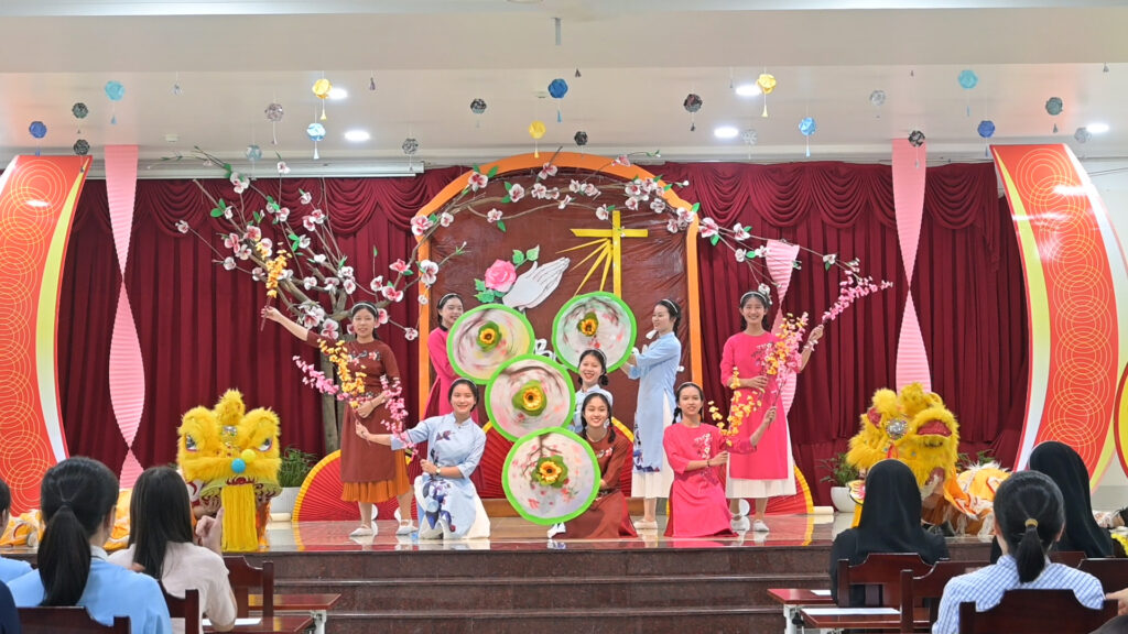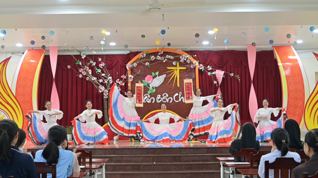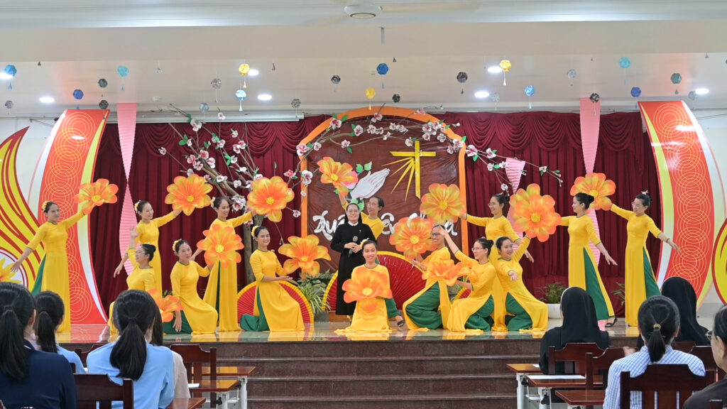 Bầu khí ngày hội càng thêm rộn ràng với những tiết mục văn nghệ đặc sắc, được chuẩn bị công phu từ quý chị khấn trọn đến các chị em trong khối huấn luyện khởi đầu. Qua từng điệu múa uyển chuyển, nhịp nhàng, chị em như hòa chung một tâm tình hiệp nhất, diễn tả niềm vui của “Xuân Bên Chúa”, mùa xuân của yêu thương, gắn kết và dâng hiến.