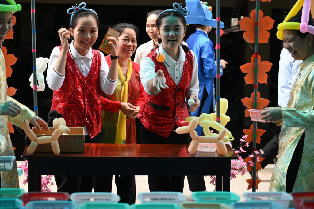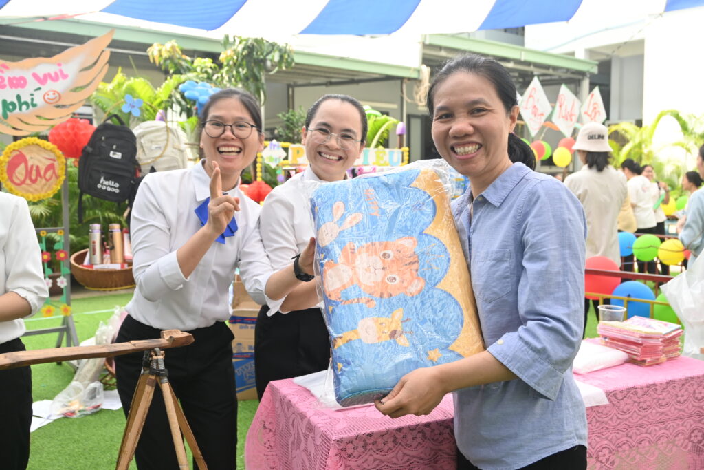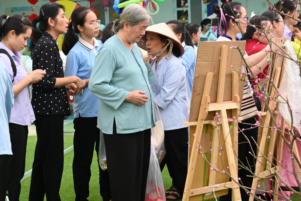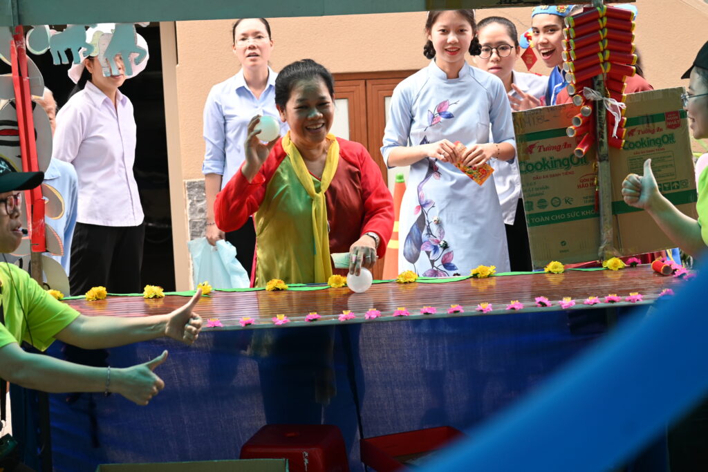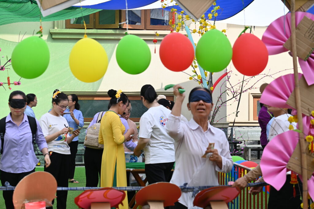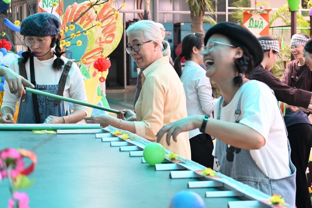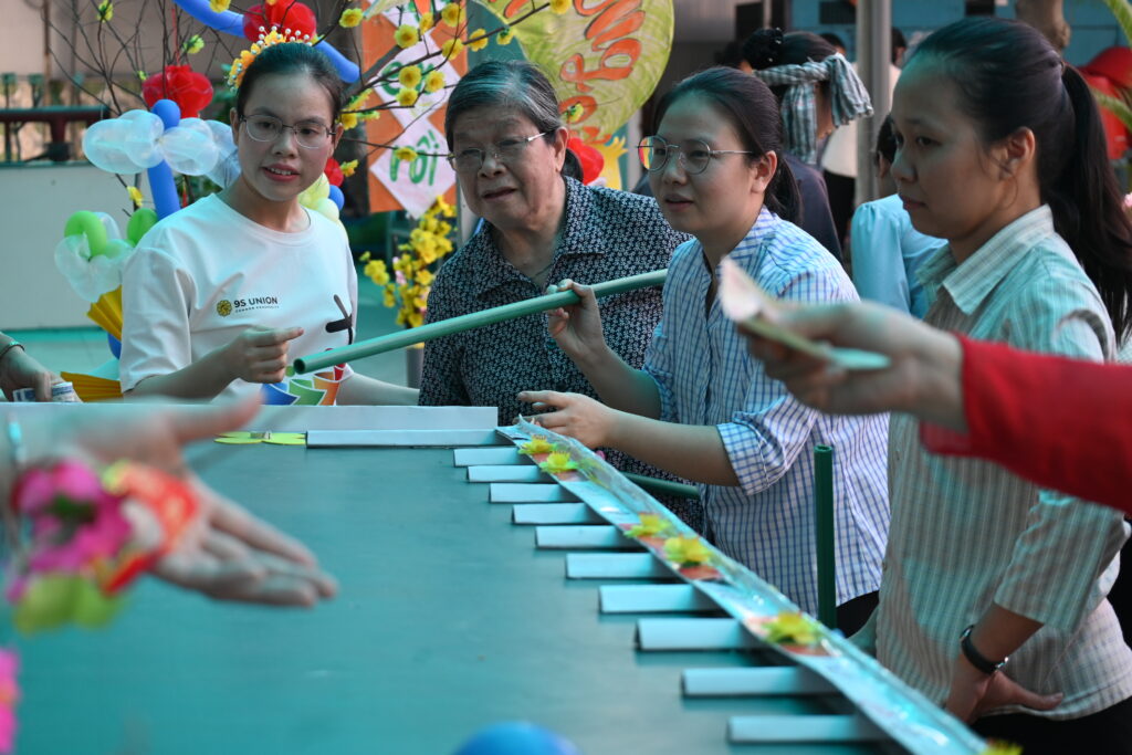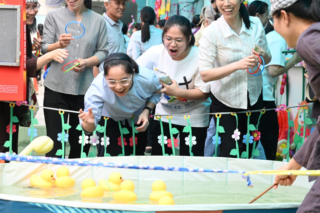 Niềm vui tiếp tục lan tỏa khi chị MC cất lên lời mời gọi đầy hào hứng: “Các gian hàng Hội chợ cùng những phần quà hấp dẫn đã sẵn sàng chào đón quý chị em…”. Tiếng cười giòn giã, tiếng reo vui khi trúng thưởng vang lên khắp sân Hội Dòng. Đặc biệt, hình ảnh các dì cao niên cùng hòa mình vào các trò chơi, trong sự nâng đỡ ân cần của các chị em trẻ, “em nhỏ đỡ chị lớn” đã trở thành khoảnh khắc đẹp, nói lên tinh thần yêu thương, sẻ chia và đồng hành trong gia đình MTG Tân Lập.
