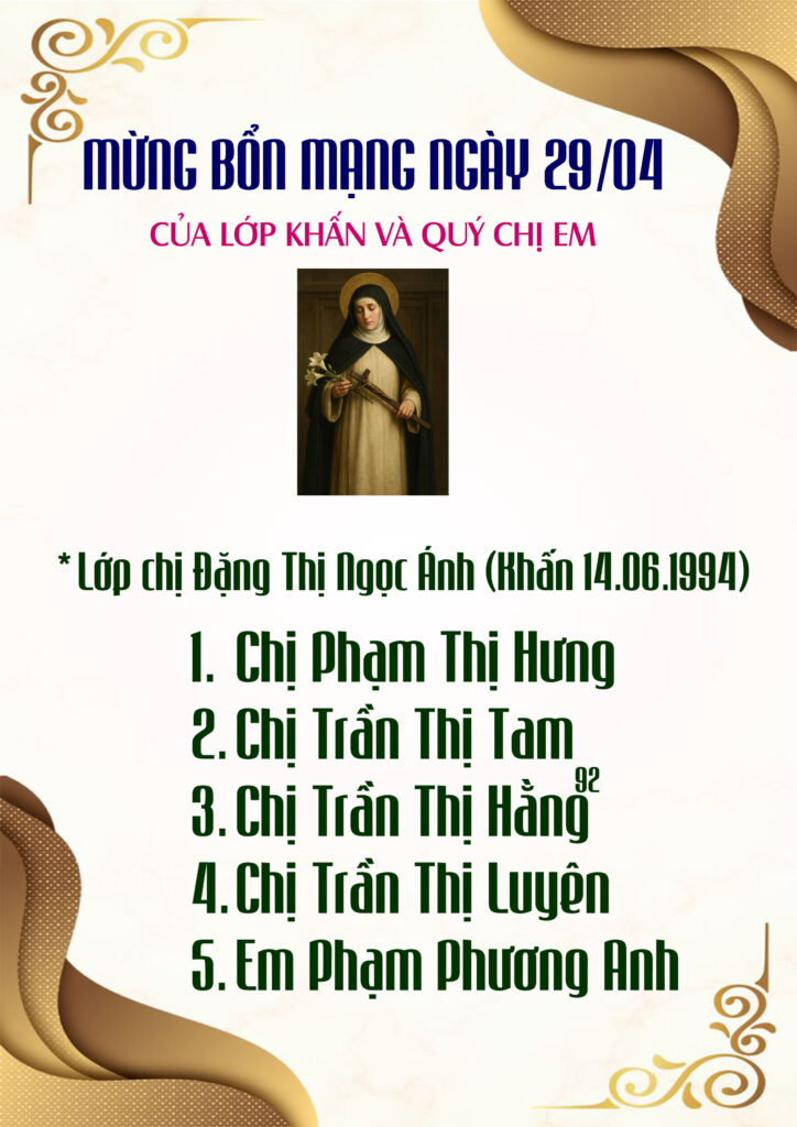 Mừng Lễ Thánh Catarina Thành Siêna – Bổn Mạng Một Lớp Khấn Và Quý Chị Em