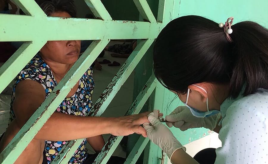 Trong hình, các bạn đang giúp các bệnh nhân nữ ở khu C và D. Những người bệnh nhẹ có thể tiếp cận trò chuyện trực tiếp, bệnh nặng hơn chỉ giúp được họ qua lớp cửa sắt khóa kín. Mỗi tháng các bạn đến đây một lần đơn giản chỉ là trò chuyện, thăm hỏi, lắng nghe, chia sẻ….hoặc cắt tóc, gội đầu, cắt móng tay móng chân…nhưng thật thiết thực và thân thương. Khi đã biết tên các bạn, người bệnh nhẹ sẽ nhớ mãi. Nên, nếu tháng kế tiếp bạn không đến được họ sẽ rất buồn và hỏi thăm về bạn ngay.
